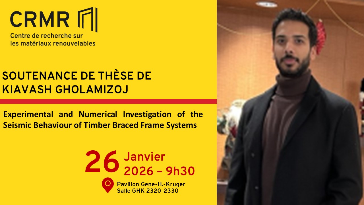 Summary : The increasing use of mass timber construction has highlighted the need for reliable seismic force–resisting systems. This research investigates the seismic performance of dowel-type connections with slotted-in steel plates through an extensive experimental program and develops calibrated constitutive models for nonlinear time-history analyses of multi-story timber braced-frame building archetypes. Fragility analyses and system-level simulations confirm the effectiveness of these systems and indicate that current code-prescribed force modification factors are generally appropriate for the configurations studied. To address performance objectives beyond conventional life-safety criteria, including serviceability and damage limitation, an innovative chevron-braced timber frame system incorporating elastomeric dampers was developed and evaluated using shake-table testing. The results demonstrate that the combined bracing and damping system significantly reduces seismic demands and peak floor accelerations, while influencing drift distribution, highlighting the importance of appropriate structural detailing. Overall, the research shows that, when combined with proper connection detailing, capacity design principles, and targeted damping strategies, timber braced frames constitute a robust and resilient seismic force–resisting system for mid- to high-rise mass timber buildings. The findings support ongoing refinement of seismic design provisions and promote the broader adoption of hybrid, low-damage timber structural systems.