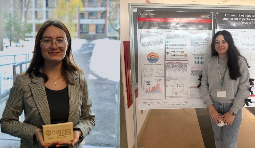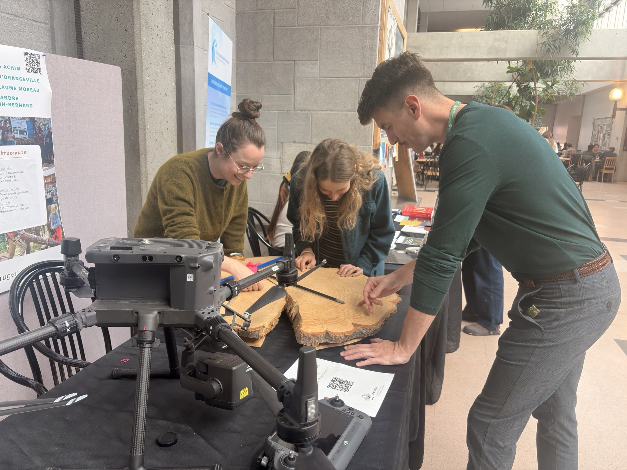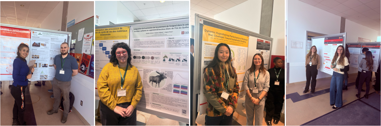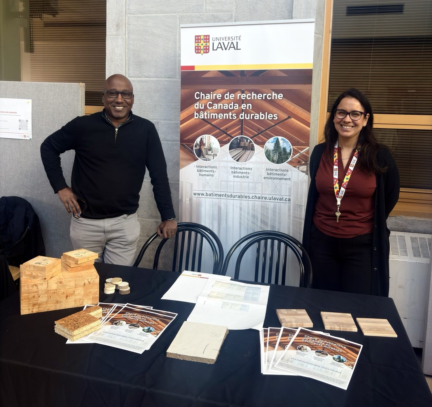 À cette occasion, deux kiosques ont également mis en valeur l’expertise et le dynamisme du CRMR en présentant des projets de recherche particulièrement innovants. Le premier était consacré à la Chaire de recherche du Canada en bâtiments durables (CRC-BD), dirigée par Pierre Blanchet, qui œuvre au développement de solutions novatrices visant à optimiser la performance, la durabilité et l’impact environnemental des constructions. Le second kiosque mettait en lumière Métafor, une méta-équipe dédiée à l’adaptation des forêts aux défis climatiques et environnementaux. Les travaux exposés, auxquels contribuent notamment Alexis Achim et Alexandre Morin-Bernard, dont l’expertise porte sur la dendrologie, la gestion durable des forêts, la résilience des écosystèmes forestiers et les stratégies d’adaptation aux changements climatiques, démontrent l’importance d’une approche intégrée et multidisciplinaire pour renforcer la résilience des écosystèmes forestiers. Ces deux espaces interactifs ont permis aux participants de découvrir des recherches de pointe et d’échanger directement avec les équipes qui façonnent les innovations de demain.